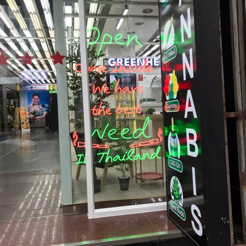 Отличное место с отличными ценами. Выгодно покупать 5+3, самый недорогой стрейн 200 бат. При этом цветок хорошо вылеченный, без плесени, пахнет вкусно. Принимают карты, AMEX