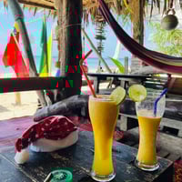 Tr�s belle d�couverte, par hasard. Situ� en haut d'un chemin relativement raide, belle vue. Le d�cor est atypique mais chaleureux, style Reggae. Menu vari�e, nous avons manger du poisson frais au BBQ, hyper bon. Possibilit� de fum�e et d'achet�. Le personels au petit soin pour nous satisfaire.