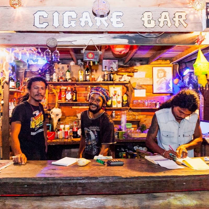 Die Cigare Bar befindet sich jetzt nicht mehr am Strand, sondern auf einem kleinen H�gel. Man kann sie von der Stra�e aus gut an den vielen Lichtern erkennen.<br><br>Das Ambiente dort ist toll und entspannt. Man kann dort abends ausgehen um etwas zu trinken oder auch das Barbecue zu essen. Wenn man gerne Gesellschaftsspiele mag, kann man sich von der Theke sogar ein Spiel zum Tisch nehmen.<br>Der Inhaber der Bar ist total freundlich und offen. Das ist wahrscheinlich auch der Grund, warum viele Stammg�ste kommen. Man wird sofort herzlich empfangen. Au�erdem gibt es dort einen s��en kleinen Hund!<br>Wir waren drei mal dort, weil es uns so gut gefallen hat!!<br><br>Jeden Dienstag gibt es auch Live-Musik. Da konnten wir leider aber nicht dabei sein, weil wir schon abreisen mussten.
