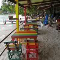 on a hide away beach with the real Island vibes, relaxing reggae music, delicious home-made pizzas, the owners a lovely most funny couple ever who know what true hospitality is, a jump in clear blue water, cocktails and happy hour! Nothing more needed...
