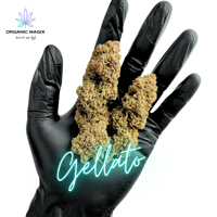 The buds of Frosty Gelato are dense, with a light green hue and covered in a thick layer of crystal trichomes, giving it a frosty appearance. The aroma is sweet and earthy, with notes of citrus and mint.