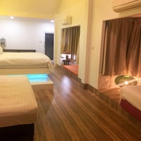 It has an outdoor kitchen / dining room, our own private entrance where we parked our scooter, all the amenities to cook and live. Then inside there is a separated area with a couch with a big TV and a desk, a separation curtain to the bedroom area and then a bathroom attached. It's got some really nice features like under the bed mood lighting and interesting paintings as well as plant fixtures. The internet is perfect and the one time it cut out their employee Jo helped us out quickly.