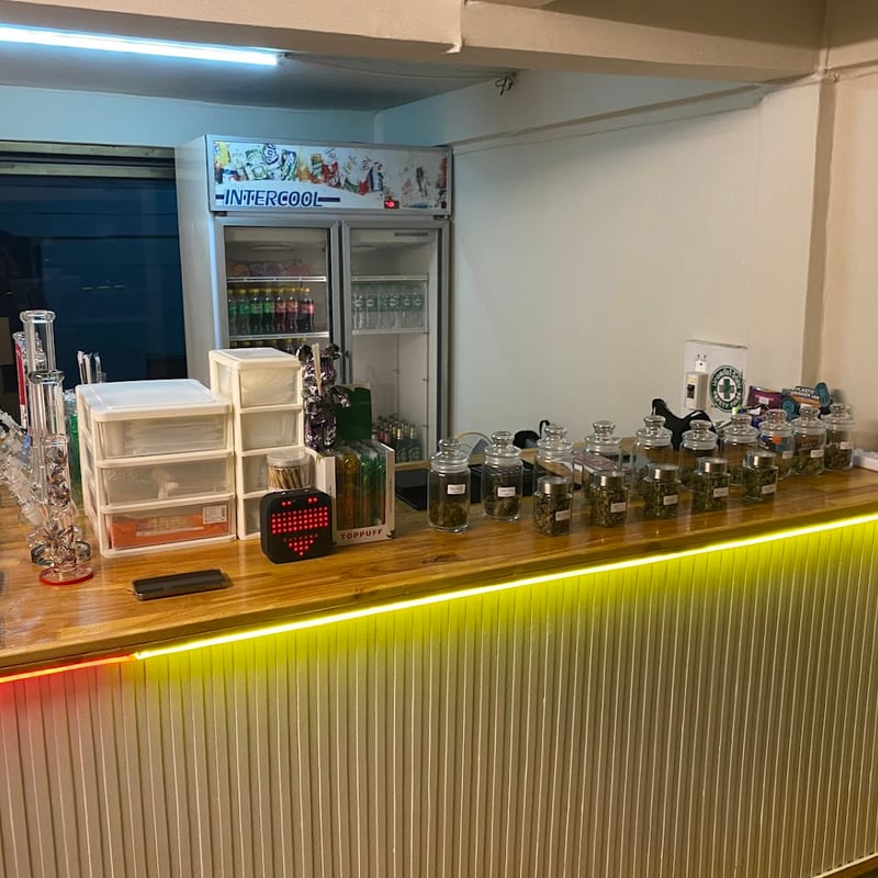 favourite shop in BKK. as a daily smoker, im impressed by their quality. you can get weed from 100-250 and i tried all strains - they are very good. They have a Ps3 with many games you can play for free. Big selection of edible gummies. ❤️❤️