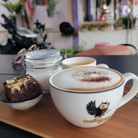 A very beautiful hearted and funny lady is running this coffman shop. The coffee is amazing and served with a very tasty brownie and love.