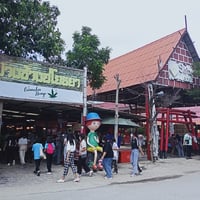 A cafe with both air-conditioned and outdoor zones. General drinking water prices are 80 baht, blended drinks are 100 baht. I felt it was too expensive. The price is the same as the nice cafes outside the market. Trying to think about the cost of the air conditioned room. But when I drank it, I felt that the taste was far from the price. It's expensive and delicious, but this is just a basic menu like lemon soda. Just took soda and it still isn't fizzy at all. Order boiled meatballs to eat as well. The meatballs themselves have a smell. Sigh 🙄🙄