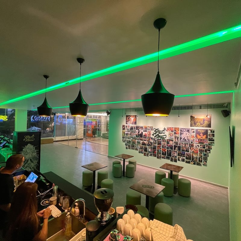 バンコクにある「グリーンハウス」は、オランダ発の有名な大麻ショップで、品揃えがとても豊富です。多くのブレンドがあり、店員さんが親切に「ハッピーになりたい?リラックスしたい?」と聞いてくれて、気分に合ったおすすめを丁寧に紹介してくれました。購入後はその場でグラインドして、きれいにジョイントを巻いてくれるサービスもあり感動しました。私が行ったときは1g購入で1gプレゼントというお得なキャンペーンも実施中。店内では吸えませんが、隣のカフェや屋外でも楽しめるとのことで、安心して利用できる雰囲気でした。