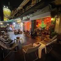 Owned by a guy we met in Taiwan, he told us to stop by if we came to Thailand and he was so nice! We could barely communicate in English but he was super friendly and welcoming. Super chill place to smoke and sit for a bit. We watched the singers performing at the bar across the street.