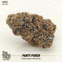 Purple Punch and Pink Panties were the parents of this intense smelling indica hybrid. A delicious fruit punch and cream aroma with some funky notes.