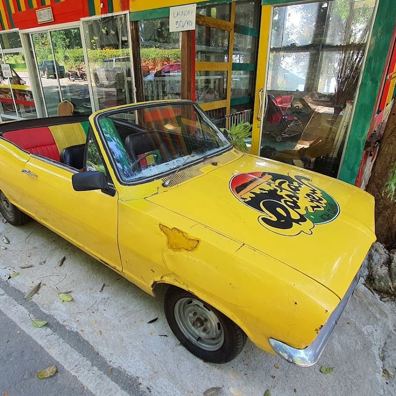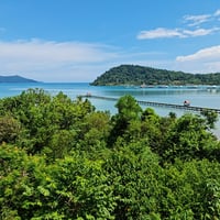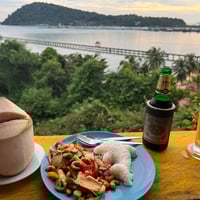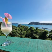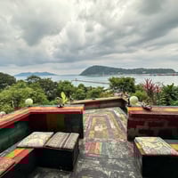 Very popular stop for tourist driving around the island. Mediocre food and coffee terrible. It use to be a popular "hippie" place, but now it's just full of tourist. Great view of the bay and Bang Bao.