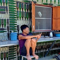 We camped overnight in the garden of Sak's farm: "Herbal Garden Home:".