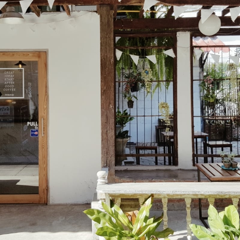 ร้านกาแฟอยู่ในซอยเล็กๆ ตรงข้ามม.แม่โจ้ เลยธนาคารสีม่วงมานิดเดียว กาแฟอร่อยมากๆ มีให้เลือกระดับของเมล็ดกาแฟ วันนี้ำปขนมเหลือแค่แครอทเค้กกับเค้กกล้วยหอม เลยสั่งเค้กกล้วยหอม อร่อยค่ะ นุ่มหยุ่น ไม่หวานเลี่ยน มีที่จอดรถหน้าร้าน บรรยากาศลอฟท์ ปูนเปลือย เราว่าแข็งไปนิดนึง น่าจะติดรูปนิดหน่อย เบรคความแข็งของปูน แต่ถือว่าบรรยากาศดีค่ะ