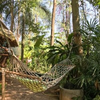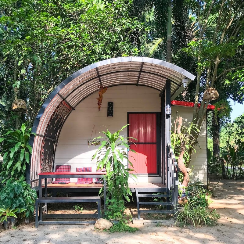Little cozy bungalows in the middle of forest! Expect lovely kitties and mosquitoes, but don't worry too much about it, there is a net over the bed