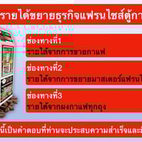 ตู้กาแฟหยอดเหรียญ รายได้ 3 ทาง 1. รายได้จากการขายกาแฟกำไรแก้วละ 50% 2. รายได้จากการขยายมาสเตอร์แฟรนไชส์รายได้ตู้ละ 12,000.-บาท 3. รายได้จากผงกาแฟทุกถุง