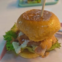 เบอร์เกอร์chew brew buds (เนื้อ+กุ้ง+เบคอน)ชิ้นใหญ่ อร่อย เนื้อนุ่ม ขนมปังหอมเนย ผักสดไม่เหี่ยว บรรยากาศดี หน้าร้านลมเย็น มีเพลงฟัง