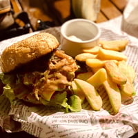 A Friend recommended me to go and eat their Chicken Burger. So I did, and yeah, they did not promise me to much. It’s a whole Chicken Fillet that they deep fry. So, it‘s a decent size. Not like the small minced chicken pattys you sometimes get. The Burgers flavors go good together, it had cheese in it, onions, tomatoes, salad, possible more I just could not taste. And I think, you should be able to add Bacon and Egg zo the burger. The Potato Wedgies (fries) are included. They where cross on the outside, and if you put the two sauces together, you get something like a little spicy ketchup which goes well with the wedgies! The staff was very friendly and the place itself was nicely decorated.