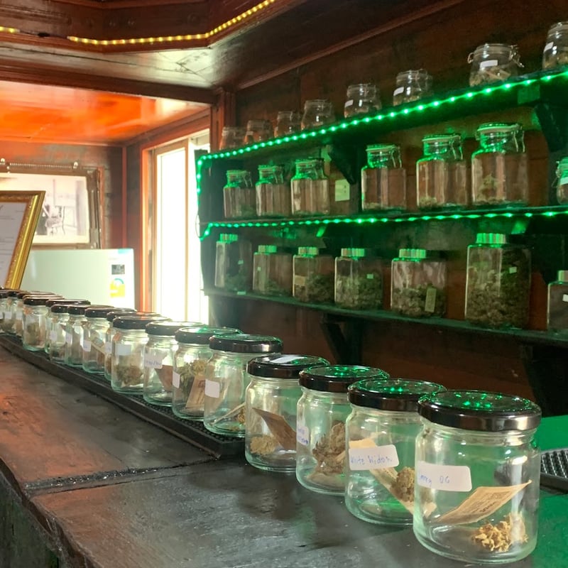 Great local spot- happy to support local farmers- all grown in house and honestly cured well. Smokes nice / a bit too much stem but still very happy ! They have a parking area - trust in the sign and go in…shop owner is super friendly. Good prices 200+ range and can smoke inside. If you want to visit a local weed shop and support Nan growers come stop here for a gram or more.