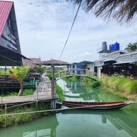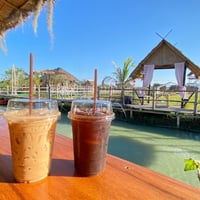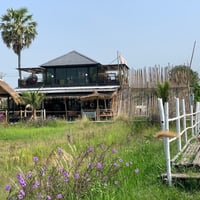 (Translated by Google) The entrance is a rather narrow dirt road. The atmosphere is in the middle of a rice field. There is a beautiful photo corner. Drinks such as coffee and cake are not very tasty, but interesting about the food. Papaya salad with sticky rice and other Thai food available
