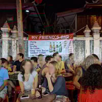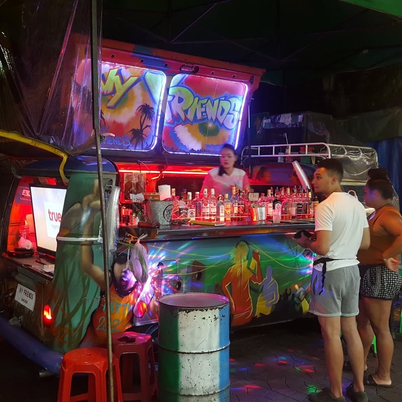 Nicht weit von der Khao San ist eine kleine Straßenbar von dem man gut Menschen beobachten kann während man kühles thailändisches Bier oder leckere Cocktails genießt. Über 44 Cocktails zur Auswahl bei sehr freundlicher Bedienung, einfach schön.
