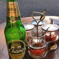 Great service and friendly staff, nice vibe on the street with good people watching. Bring food in if you want it, and have a joint if you like it! 100 baht big beers, 80 baht small.