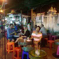 노점 술집. 옆 노점 식당에서 음식을 사서 먹을 수 있어요. 단, 술을 시켜야 가능함. 뭐 그냥 먹는 사람들도 있긴 함. 창비어 100밧. 약간 비싼감이 있지만 카오산의 번잡스런 분위기에 비하면 나름 괜찮은 노점 술집. 앞에서 종이로 만든 생일카드 파는 장애가 있는 아주머니가 계신데 이상하게 매일 카드를 하나씩 사게 됨......