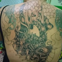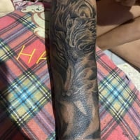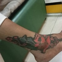 With a stick and poke, into the skin to create lines !! They are very professional so nice I love it