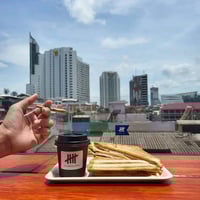 Such a cool place. Literally just stumbled over it by accident when ordering some food downstairs. Colorful, squeaky, cozy, playful. The hidden rooftop is a super nice place so relax, soak in the atmosphere, have a bite and a drink.