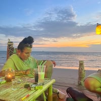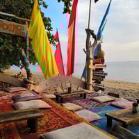 A really cool beach bar! It was giving Glasto/ Healing Fields vibes! Recommend the passionfruit mojito. Great chilled music and a very adorable kitten!