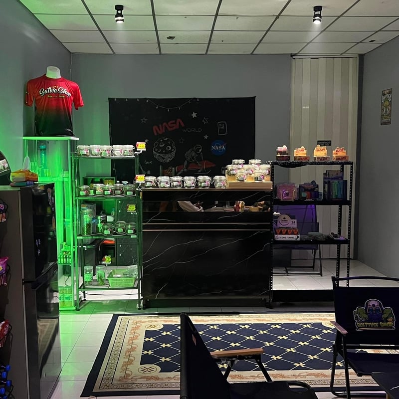 ร้าน SATIVA SHOP จำหน่ายกัญชาร้อยเอ็ด บ้องแก้ว กระดาษ และอุปกรณ์อื่นๆ เปิดร้าน 12:00-00:00น. SATIVA SHOP sells cannabis, Roi Et, glass bongs, etc. Open from 12:00-00:00 hrs.