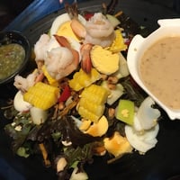 - Good vegetable salad, lots of shrimp, delicious salad dressing.