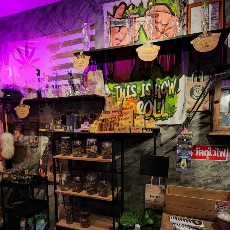 Greedy tourist pricing = no regular customers. Came here and their cheapest average quality weed is ฿500 a gram! Went around the corner and got better weed for 200 baht a gram from a shop with actual local customers.